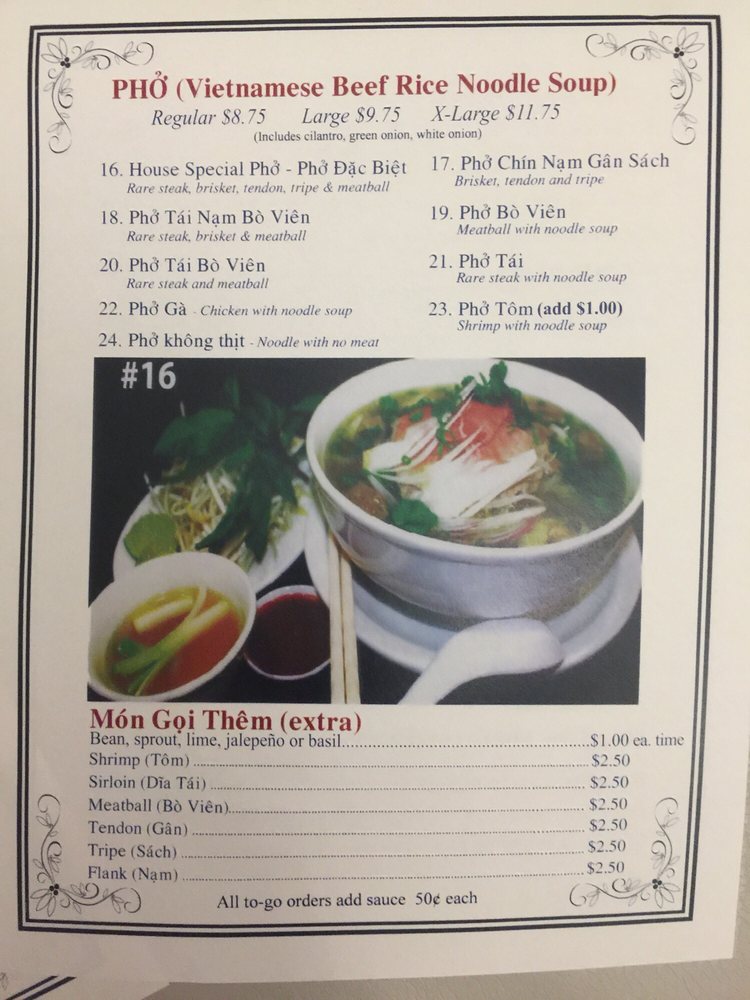 Pho dac biet, Rare steak, brisket, tendon and meat ball.